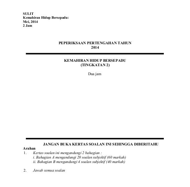 Soalan Peperiksaan Pertengahan Tahun Khb Tingkatan 2 2014